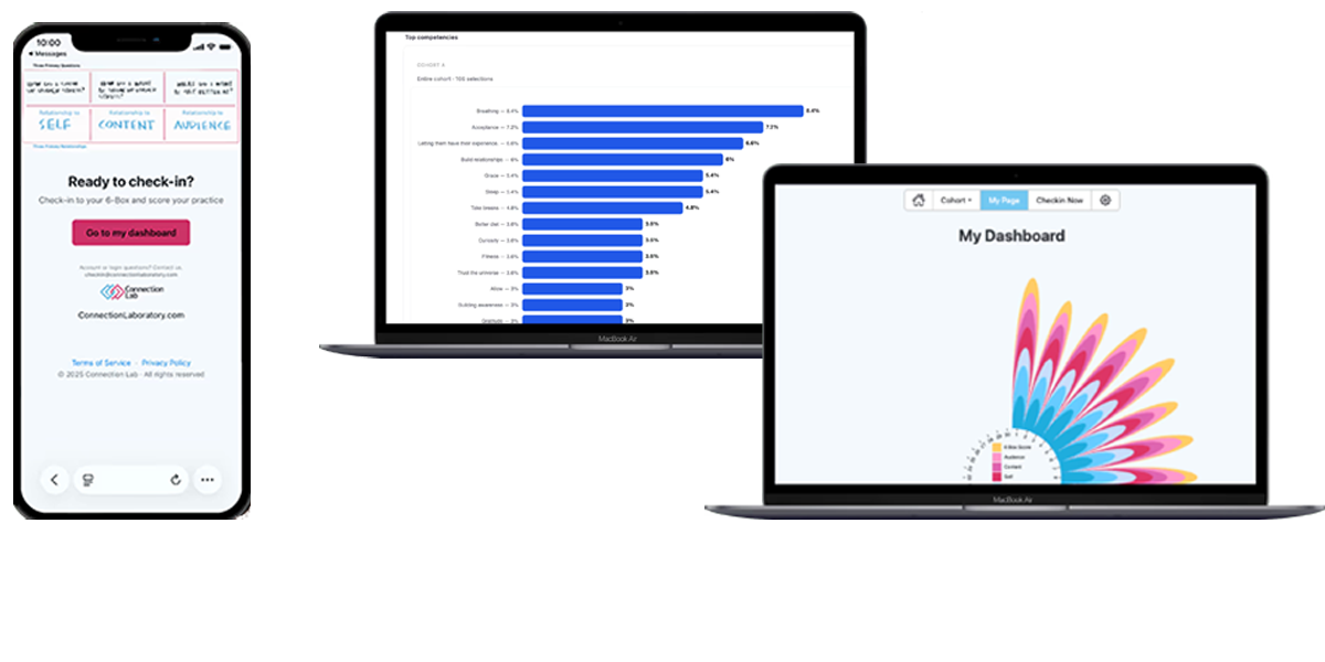 The Check-in Lab Pass is a web app (no download required, mobile and desktop ready) designed to keep the learning alive long after the workshop ends. Participants asked how they could stay connected. Enterprise partners wanted a way to embed the practice across their organizations. This is our answer.